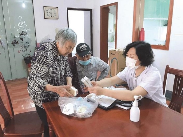 张凤琴和孙奶奶一家人相识已有十多年。老人今年90多岁,老伴去世后便一人独居,去年还摔了跤。为此,张凤琴不仅经常上门看望她,还多次提醒子女陪护老人。今年10月,孙奶奶告诉张凤琴,自己小便次数很多。听了老人的描述,张凤琴立刻建议子女带她去市一院仔细检查,结果确诊肾功能衰竭。经过近一个月的治疗,老人顺利出院。此时,一个新问题出现了,激素治疗后,老人的血糖明显升高。为此,张凤琴第一时间建立了“家庭病床”,每周上门为老人进行康复指导。