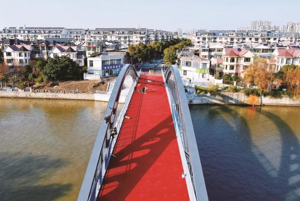 16日,如皋老北门大桥新桥建设工程施工现场,施工人员正在抓紧扫尾施工,做好2024年元旦通行前的准备工作。如皋北门大桥始建于上世纪七十年代,横跨如泰运河,承载了如皋人的思念和回忆,被称为“乡愁老桥”。该桥年久运行失修,新桥建设被当地政府列为重点民生工程,新桥建成后将进一步改善区域交通环境,方便群众出行。 吴树建摄