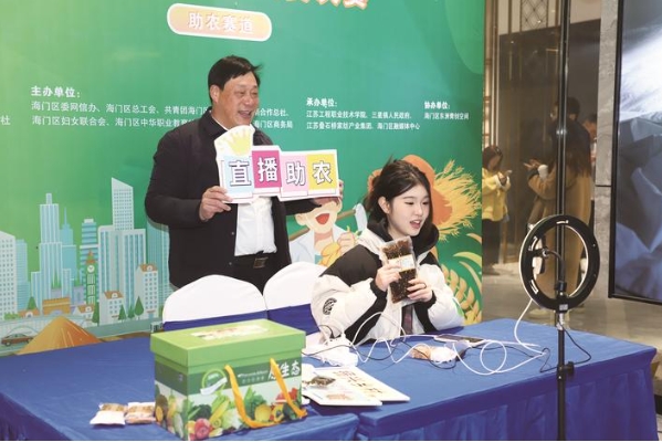 昨日,一组选手在比赛现场开展电商直播带货。当日,南通市“叠石桥杯”首届直播电商大赛总决赛在海门区三星镇叠石桥电商城正式开赛。20组选手在直播间里各显身手,展现了“硬核”的直播带货能力。 记者 黄天玲摄