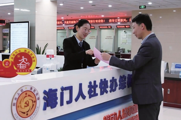 海门立足长三角政务服务一体化发展示范区优势,在区政务服务大厅开辟了长三角政务服务合作企业开办一站式专区,通过推行“一站式、集成式、保姆式”服务,实现企业设立、公章刻制、税务登记、银行开户、社保登记、公积金登记、医保登记七大环节“一窗受理、一次办结、一日办结”,同时依托代办帮办服务,为企业群众提供全链条、全事项、零付费、保姆式帮代办服务,为项目在海门落地提供政策咨询、项目申报、工商注册等方面一站式服务。