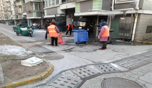 为应对此次寒潮天气,永兴街道成立应急小组,24小时不间断地对路面进行清洁和巡查,对道路积雪积冰进行清理。冬季昼短夜长,为保障市容市貌,环卫工人们每天天还未亮就出门清扫,他们娴熟地挥舞着扫把,铁锹,有的清扫,有的装车,动作干脆有力,彼此配合默契,虽然脸冻得通红,但额头却冒着热气,帽子和口罩上结了一层霜花。下午,他们还要对各自分管的路段进行巡回保洁,确保责任区全天候整洁干净。