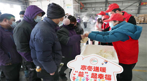 深知在寒冷的冬季这些户外工作者的不易,幸福街道秦西社区、花桥社区的志愿者20日上午7点走进南通综合物流园区,为园区的快递小哥、叉车司机、装卸工人送去温暖和关爱。“我们昨天就将辅料准备好,今天凌晨5点起来蒸包子、熬粥,还准备了100多个茶叶蛋给这些工作人员。他们真的不容易,刚刚那个送快递的小伙子告诉我他们一般都要干到晚上8点多,有的甚至要到凌晨。”志愿者李阿姨心疼地说。“没想到一大早能吃到热乎的包子和粥,有时候赶着送货吃饭就凑合凑合,有时两顿并着一顿吃,谢谢你们啊!”安能物流职工夏凤凤笑着表示。