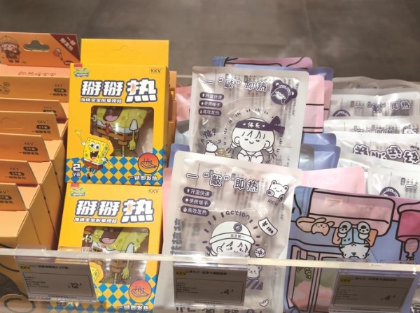 不同于“杂物社”推出的功能集合性的取暖工具,“KKV”选择将产品的“细分化”做到极致。今年不仅推出了针对脖颈的暖颈贴,还为小朋友设计了“敲敲热”和“掰掰热”:只需要打开卡通包装取出内里的果冻状物体,随意捏取便会发热,且温度不高于60℃,在保证了安全性的同时,也让小朋友用单价6.9元的价格获得了“温暖”的乐趣。据店长徐磊介绍,店员在售卖时会提醒小朋友和家长关于安全隐患和二次使用的方法,“目前已经是店里的网红神器了”。