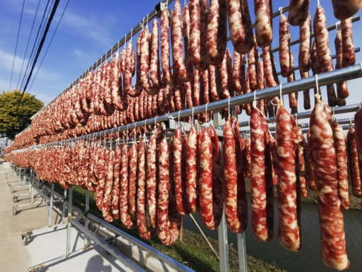 俗话说:“无腊味、没年味”,随着日子一天天向年尾跑去,不少人开始为过年做起了准备,搬经人的冬天最羡慕的就是把腊货当窗帘的人。门前院后、街头巷尾,随处可见一串串红白相间的香肠悬挂在晾晒绳上,在阳光的闪耀下,透着诱人的色泽,浓浓的肉香味儿扑鼻而来。