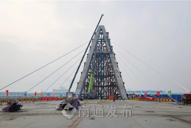 太平路大桥是南通第一座无背索双索面独塔斜拉桥。历经540个日夜的奋战,太平路大桥于2024年1月20日完成主体施工,目前正在拆除主塔钢支架,春节前完成拆除工作。