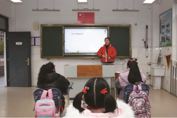 2月29日上午,南通特殊教育中心听障部四年级教室,数学老师顾师洁使用“络+”辅听设备上课。 记者尤炼