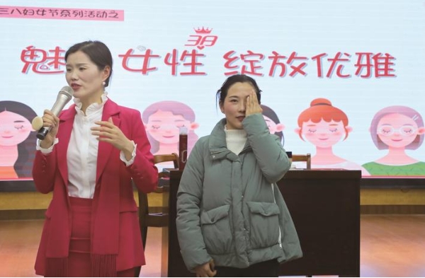 昨天,江心沙农场邀请资深礼仪文化咨询教育专家和化妆师开展“魅力女性 绽放优雅”主题活动,为全体女职工传授妆容、服务礼仪和语言沟通等方面的技巧,帮助大家塑造和提升形象气质。 通讯员袁伟 记者许丛军