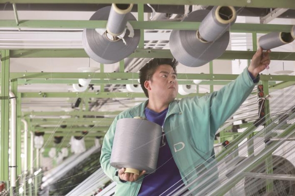 8日,工人在位于港闸经济开发区的江苏金秋弹性织物有限公司车间抓紧生产。江苏金秋弹性织物有限公司是一家弹性织带制造商,产品广泛应用于贴身衣物及运动服饰,销售遍及全球。 记者 许丛军摄