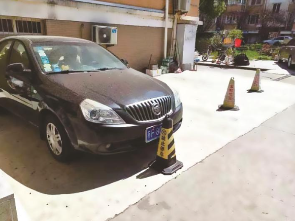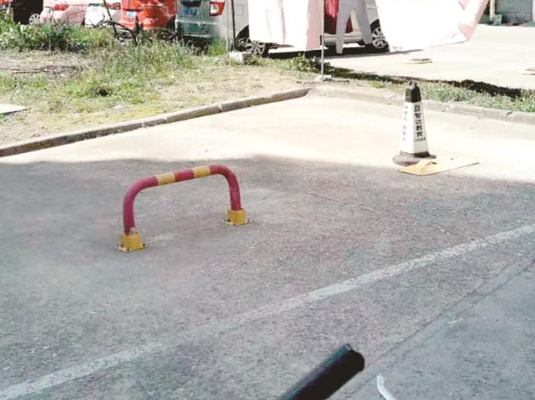 除了安装地锁地桩,还有居民在公共区域放上大小不一的锥筒或旧家具等障碍物“宣示主权”;有的居民更夸张,在占据的停车位上私自拉线、建围挡。