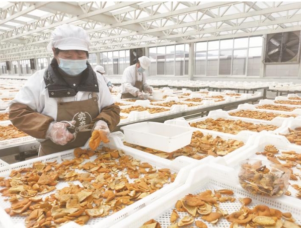 22日,村民在海安李堡红旗村的南通市奕森食品有限公司车间加工生产蜜饯果脯。红旗村党总支发挥党建+优势,大力招引农产品加工项目,着力安排低收入农户进企务工,让村民在“家门口”就业,提高村营收入。康传广文 秦成华摄