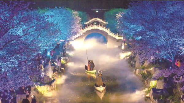 位于通州区五接镇的洲际梦幻岛上周末开放夜场,吸引了18500多名游客进园欣赏夜樱美景。据了解,今年清明小长假,梦幻岛将继续开放夜场。 通讯员房国强 记者许丛军