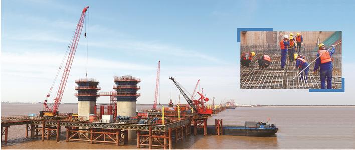 昨日,中铁大桥局崇启公铁长江大桥项目部的工人在3号主墩绑扎第二次承台钢筋,确保4月中旬浇筑第二次承台混凝土,4月下旬浇筑第三次承台混凝土的目标。