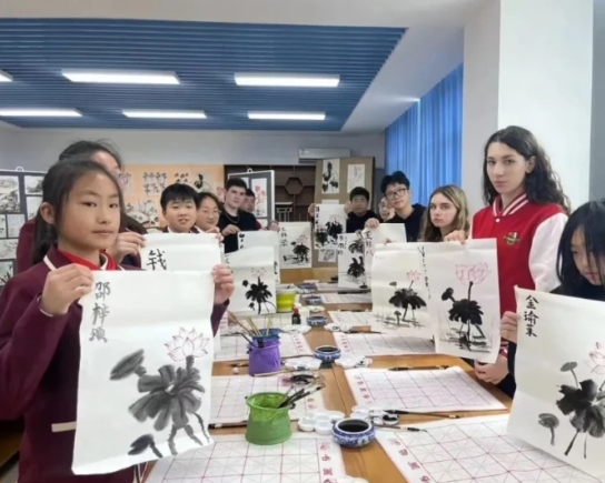在游学过程中,学生们走进城南实验小学课堂和海安中学校园,与中国学生展开交流互动。