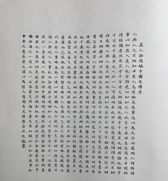 张謇所作的序,名为《美人勃德编中国名传序》。“美之勃德君慨焉辑我今代生存人事略,各为小传,以贻其国人,而介使相知……”序言中,张謇不仅对美国人勃德编撰中国名人传一事做出积极评价,还留下了富有人生哲理的感言。