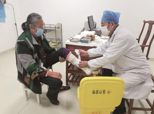 16日下午,在海安市中医院门诊4楼名医堂内,68岁的曹永泉准时坐诊“民间特色中医门诊”,为慕名前来问诊的下肢溃疡、糖尿病足、老烂腿等患者逐一诊治。