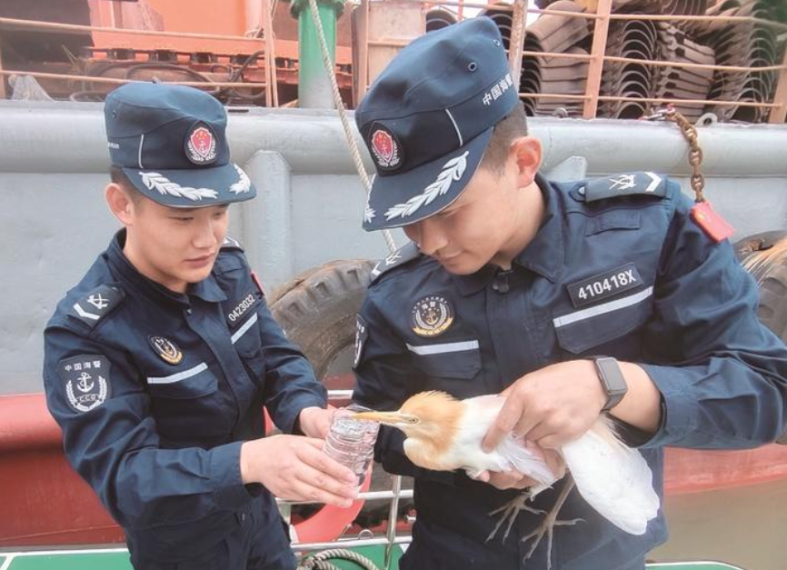 海警执法员在小心包扎完牛背鹭伤口后,对其全身其余位置进行了检查,确认无异常后,投喂食物及饮用水。随后,执法员联系了启东野生保护动物救助站,将牛背鹭交由救助站工作人员进行专业救治,待其完全康复后将放归大自然。
