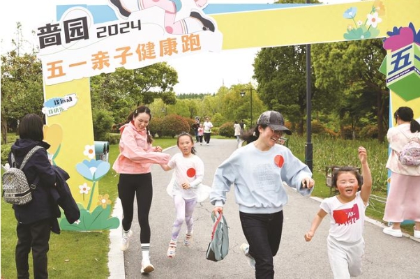 1日,啬园景区“五一”亲子健康跑活动吸引了40余个亲子家庭参加,跑出健康和快乐。 记者 尤炼摄