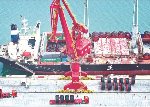 4日,通州湾新出海口启东吕四起步港区通用码头,正忙碌装运智利、委内瑞拉和越南等航线的出口风电整机和柔性软管等货物。今年前3个月,吕四起步港区通用码头吞吐量同比增长108.6%,1—4月累计完成件杂货吞吐量约71.5万立方米。
