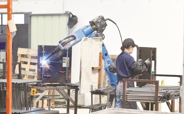 6日,海安市胡集街道的江苏凯歌塑料科技有限公司车间内,智能机械臂、自动化激光切管设备等“火力全开”,工人正加紧赶制国内外客户的折叠桌椅订单。近年来,海安加速传统制造业“数智化”转型,通过设备更新、工艺升级、数字赋能、技术创新,助力工业经济提质增效。 顾华夏摄