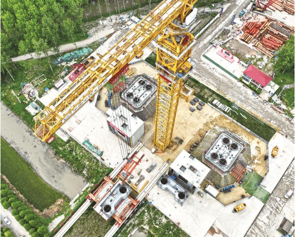 昨日,张靖皋长江大桥南航道桥北主塔区域开启主塔钢节段吊装作业新节点。截至下午5时许,1.5万吨米塔式起重机已完成两节400余吨的钢节段吊装作业。据了解,此次主塔钢节段吊装作业共有8节钢节段,预计11日完成。 记者 丁传彬摄
