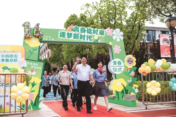 21日,南通中学附属实验学校举行青春仪式,初二的学生们在家长陪同下跨入“青春之门”。学生们摘下胸前的红领巾,与家长互换家书。校长也送上美好的祝愿,希望他们高唱青春之歌、点亮梦想之光。