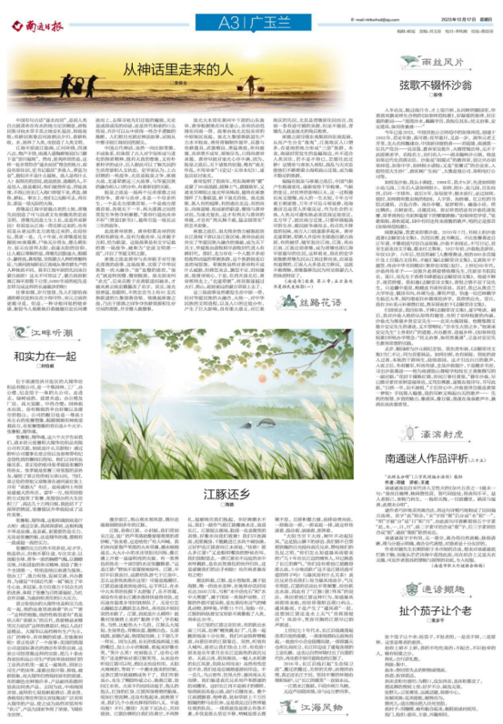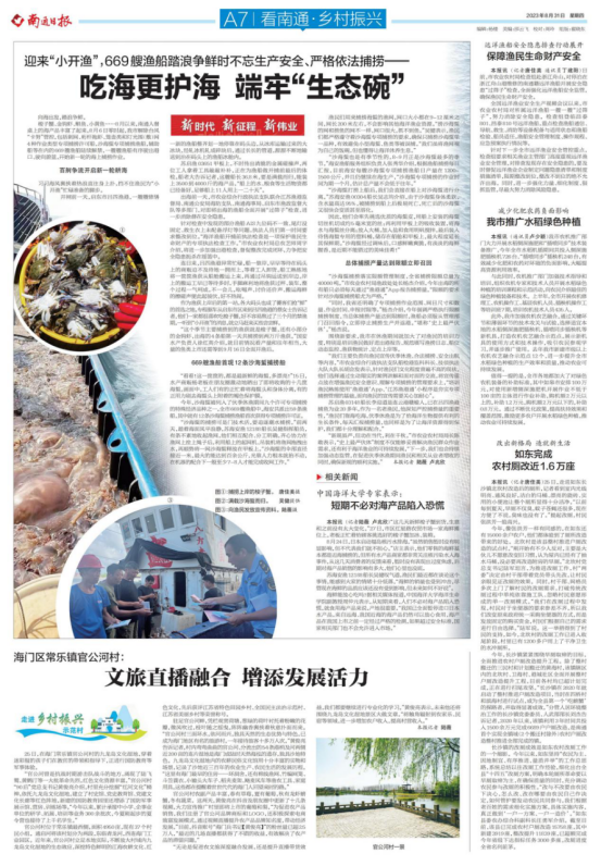 作为地方主流媒体,积极主动承担传播党和政府强农、惠农、富农宣传的重任,突出宣传好乡村振兴的战略政策、宣传好党委政府的惠民情怀,讲好“三农”故事,助力乡村振兴。全年围绕粮食安全、耕地保护、农业科技、高标准农田等重大主题,通过文字、图片、视频等形式,采写出了一大批“沾泥土、冒热气、带露珠”的“三农”新闻作品。《南通日报》全年推出24期乡村振兴半月刊,多幅乡村振兴题材照片被新华社、人民日报、《农民日报》采用,有50多篇文章被学习强国转载。