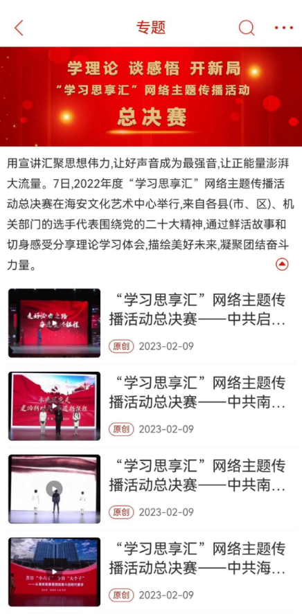 坚持守正创新,用形式多样的新媒体产品传播党的声音,凝聚前行的力量。南通发布客户端在理论专题《学与思》中开设视频专栏,生动阐释宣传总书记系列重要讲话精神和党的二十大精神,让网友有“声临其境”的学习体验,全年已集纳48期。开展学理论 谈感悟 开新局“学习思享汇”网络主题传播活动,并以微视频专栏形式在报业新媒体平台刊播,深入浅出阐释新思想伟力。