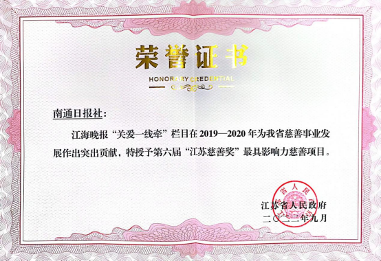 获第六届“江苏慈善奖”最具影响力慈善项目