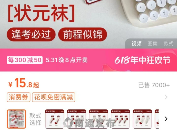 记者关注到一家网上店铺的“高考状元袜”月销量超过7000单。从网友留言中,记者了解到这款“高考状元袜”之所以大受欢迎,最主要的还是寓意吉祥。一位网上店铺的店主告诉记者:“红色衣服很受高考学子的青睐,不少家长图吉利,也借此祝福孩子考出好成绩。”