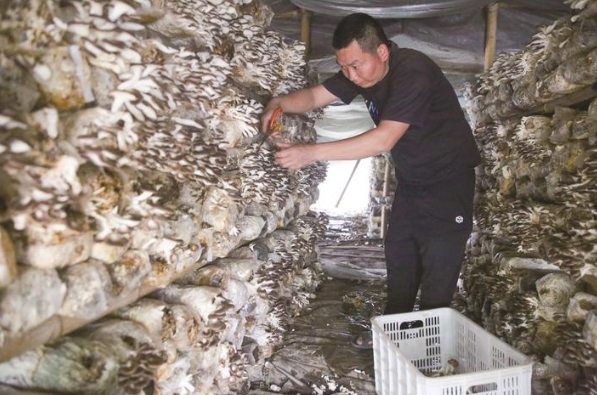 上周,如皋市如城街道新民社区一温控大棚内,菇农正在展示采收的秀珍菇。该种植基地通过智能化温控栽培技术,让秀珍菇住上了“空调房”,实现四季生长,助农增收成效显著。 CFP供图