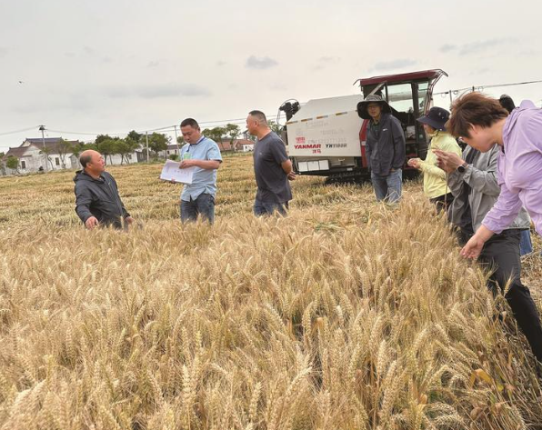 在收割现场,测产专家组反复丈量、清仓、验磅、称重、测量水分杂质等,最终计算出亩均产量。“我们把年轻的技术干部带到测产的田头,让他们与种田能手交流,在种子、栽培、植保、土肥、农机等各方面获得了比书本更为宽泛的实践知识。”陈昌军告诉记者,从测产结果来看,各参赛主体主推品种、技术应用到位率较高、管理措施到位,均获得了较好的产量。据了解,全市297.8万亩小麦上月月底开镰收割,截至6月7日,已收获66.63%,预计10日进入扫尾阶段。