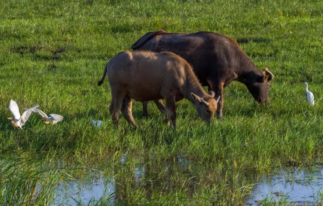 近年来,随着生态环境持续向好,水鸟纷飞、鱼翔浅底的美景在启东屡见不鲜。在城区最南处,隔着一道堤坝,一侧是浩瀚的长江,一侧是丰美的水草地,牛群在此觅食,白鹭在牛背上栖息,构成一幅美丽的生态画卷。