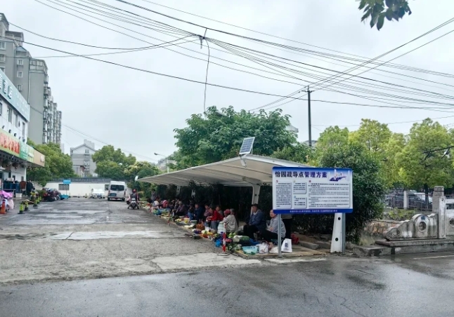菜农在路边卖菜存在诸多安全隐患,解决这一难题既要照顾到菜农生计问题,又要考虑到市民通行需求。去年,南通市城管部门伸出援助之手,助力建成多处果蔬销售疏导点,让菜农卖菜有处可去,一定程度上破解了菜农卖菜的难题。“以前没有疏导点时,大家为了抢占摊点,有的甚至凌晨两三点钟就赶过来,现在有了固定摊位,大家安心多了。”唐闸镇街道怡园疏导点经营户徐兰英说,今年街道城管还重新铺设了水泥摊位,做了排水槽,摊位更加干净整洁多了。而最让摊贩们感动的是城管还将主动设置了停车雨棚,让摊贩们遮阳挡雨。