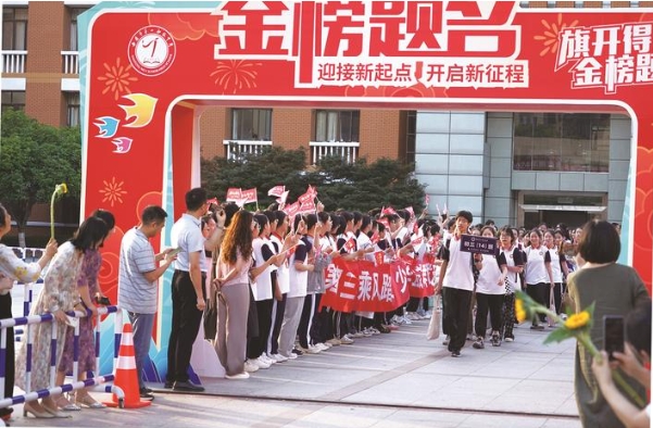 中考在即。昨天下午,南通市第一初级中学全体初二学生站在校园道路两侧,给即将参加中考的初三学长们加油鼓劲,祝愿学长们考试顺利,取得佳绩。沈晔 沈樑