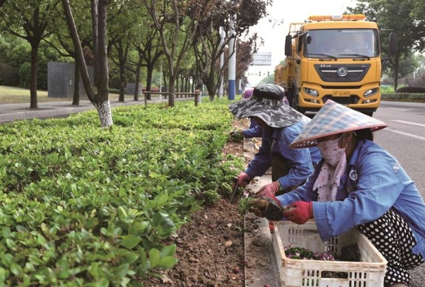 13日下午,绿化作业人员在市区世纪大道更换花卉。连日来,市园林绿化管理处在市区世纪大道、园林路、啬园路等处更换夏季花卉,更换面积共计20000多平方米。 记者尤炼 通讯员季庆楠