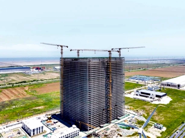 中国天楹如东重力储能示范项目位于洋口镇高端装备制造产业园,占地面积208亩,总投资6.5亿元,规模为100MWh,发电功率为26MW。经过一年多的建设,项目已于去年9月26日实现主体工程封顶,今年5月4日完成首套充放电单元测试。