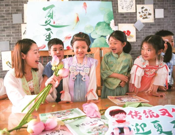 昨天,如皋市如城街道在辖区内安定幼儿园开展“感受民俗 喜迎夏至”主题活动,文明实践员带着小朋友折纸扇、拌凉面,学习夏至相关民俗知识,感受传统文化的魅力。 CFP供图