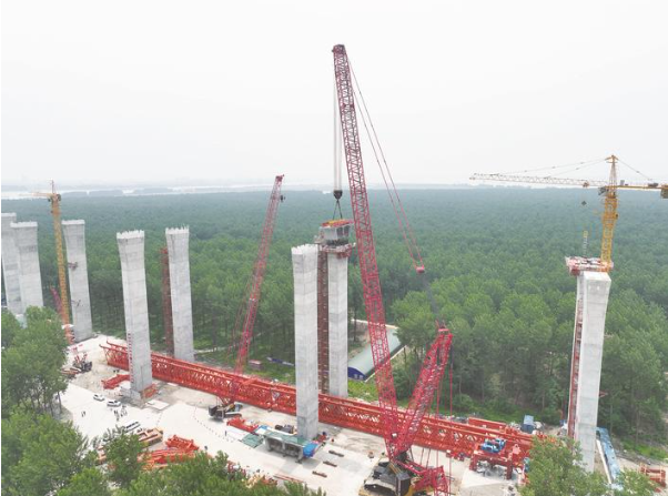 本网讯 (记者彭军君 通讯员杭正雨 邓哲玮)昨天,由中铁大桥局承建的张靖皋长江大桥中引桥CY17#墩墩顶节段梁吊装完成,这是项目全线所有标段中率先架设的第一榀,标志着张靖皋长江大桥ZJG-A2标段项目正式进入上部结构施工阶段。