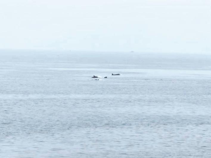 调查显示,去年6月多次记录发现,海门东灶港是伪虎鲸主要栖息地。去年,除了志愿者们拍摄的画面外,江苏南通海警局在东灶港附近巡逻时,也偶遇到一群伪虎鲸,它们非但不胆怯,还欢快地陪伴舰艇一起巡航,画面温馨又可爱。