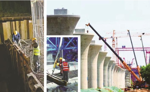 25日0时20分,随着最后一车混凝土浇筑,由中铁大桥局承建的崇明特大桥525号墩承台浇筑完成,标志着崇明特大桥江苏段承台浇筑全部完成。崇明特大桥是上海至南京至合肥高铁沪宁段站前V标重点工程,正线总长19.072千米,由24米/32米跨预制简支梁桥、577片预制箱梁,以及一座2台6线建设标准崇明车站和10座跨路、跨河大跨度节点桥梁组成。截至目前,崇明特大桥施工红线跨上海崇明区、江苏启东市两地。崇明特大桥(一分部)钻孔桩2141根,承台、墩身259座。其中江苏段钻孔桩376根,已完成376根,占100%,承台、墩身45座,目前承台完成45座,占100%,墩身完成44座,占97.7%。