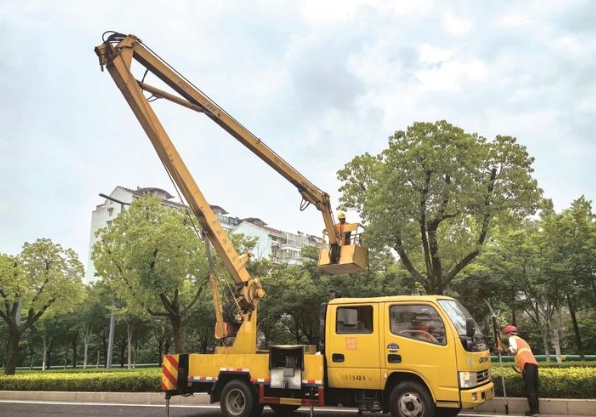 昨天,工人在跃龙南路修剪路旁的树木,为市民提供安全、优美的环境。记者许丛军