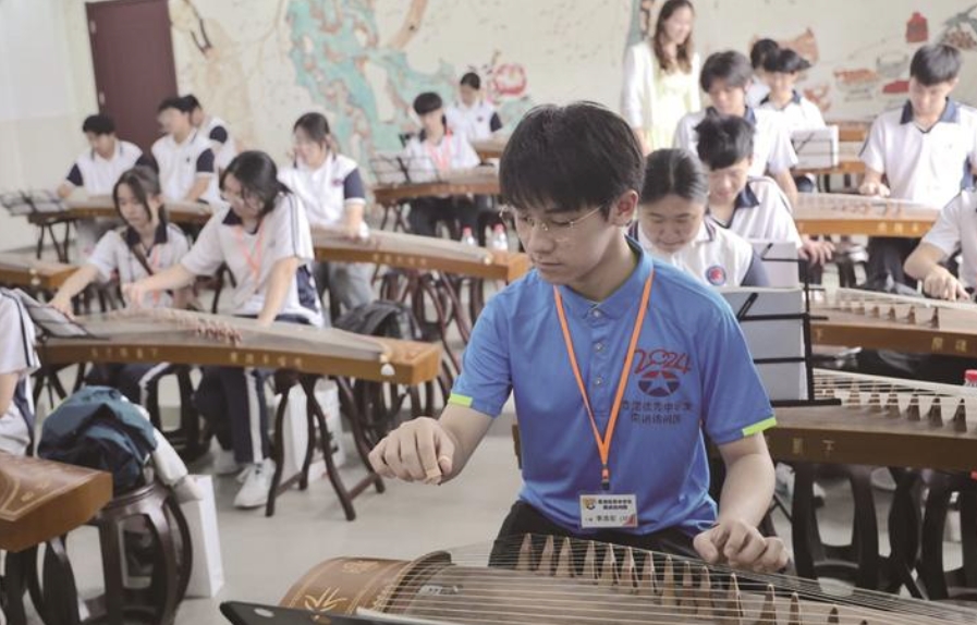 “很多男生喜欢刀光剑影、快意恩仇,我推荐香港才子黄霑的名曲《沧海一声笑》,大家来学习一下。”在小海中学的古筝教室,古筝老师卢校云示范如何弹奏古筝。随后,两地学生一一配对,共同体验弹奏古筝。“我喜欢民族乐器,在香港学习过琵琶。这是我首次亲手接触古筝,感觉好极了,中华文化很有魅力。”香港学生李浩宏说。