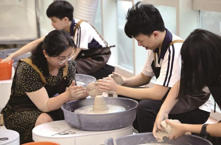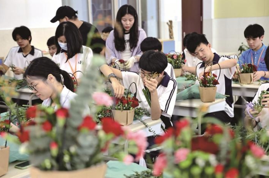在插花教室,在老师的耐心指导下,不一会儿,香港学生就在花泥上插出不同韵味的花束。当天,他们还体验了陶艺制作过程。