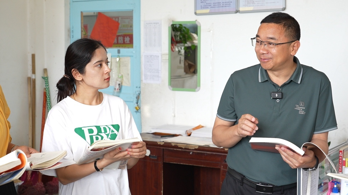 曹荣彬与当地年轻教师“青蓝结对”,交流探讨教育教学方法