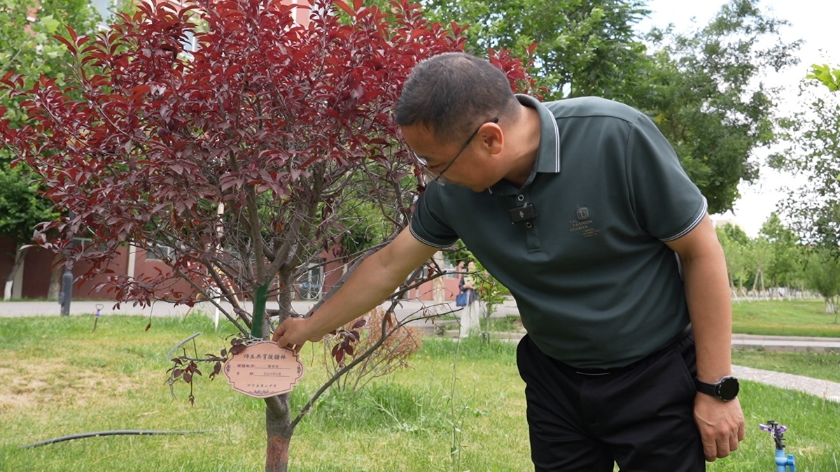 在伊宁二中的校园内,每位援疆教师都会亲手栽植一棵“援疆树”,树苗佩戴上了一张身份卡片,上面写着“师生共育援疆树”以及援疆教师的姓名和植树的时间。“种下一棵树,留下一生情。小小的一棵树,其实蕴含着我们援疆教师团队‘十年树木,百年树人’的教育豪情。”曹荣彬感慨道。