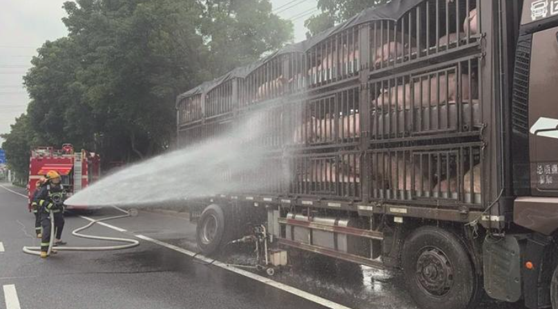 连日来,天气闷热,南通消防接连接到两起求助:由于气温高、运输时间长,货车上装载的活猪被热晕。多亏消防员及时赶到,保住一车猪的性命。