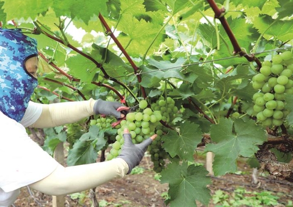 昨天,果农在江心沙农场生态葡萄园忙着采摘、包装葡萄,准备发往周边市场。据了解,受梅雨天气影响,今年集中批量采摘时间略晚,导致订单大量积压,随着天气转好,果农忙着采摘订单葡萄供应市场。 通讯员袁伟 记者许丛军
