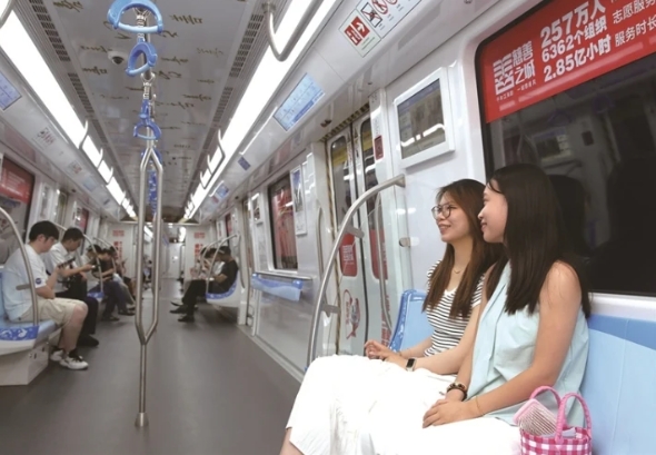 “上车时眼前一亮,火红的色调一下子吸引了我的注意力。乘坐慈善主题列车,就像流动的课堂,让人耳濡目染接受熏陶,很有创意,也很有意义。”当天,市民陆惠带着儿子乘坐地铁前往北大街站。车上,她和儿子细数南通涌现的慈善模范典型,在孩子心里播撒慈善的种子。她告诉记者,自南通地铁开通以来,她就爱上了这种绿色便捷的出行方式,更注意到南通地铁开通了不同主题的专列。