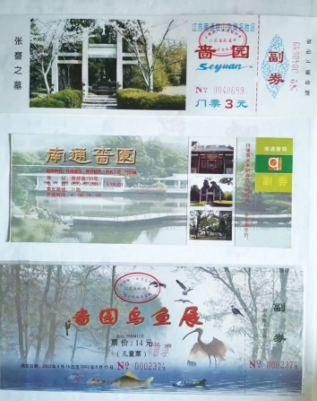 啬园建于1924年,为全国重点文物保护单位、“江苏省环境教育基地”“南通市爱国主义教育基地”。清末状元、近代民族工业的先驱、实业家、教育家张謇先生长眠于此。“我收藏了近100张啬园门票,主要源于我对张謇先生的崇敬。”今年4月,他专门撰文《纪念啬园建园一百周年》,发表在“长三角收藏”微信公众号,用图文并茂的形式,展示了他收藏的各个不同时期的啬园门票以及他亲手拍下的啬园风光照。