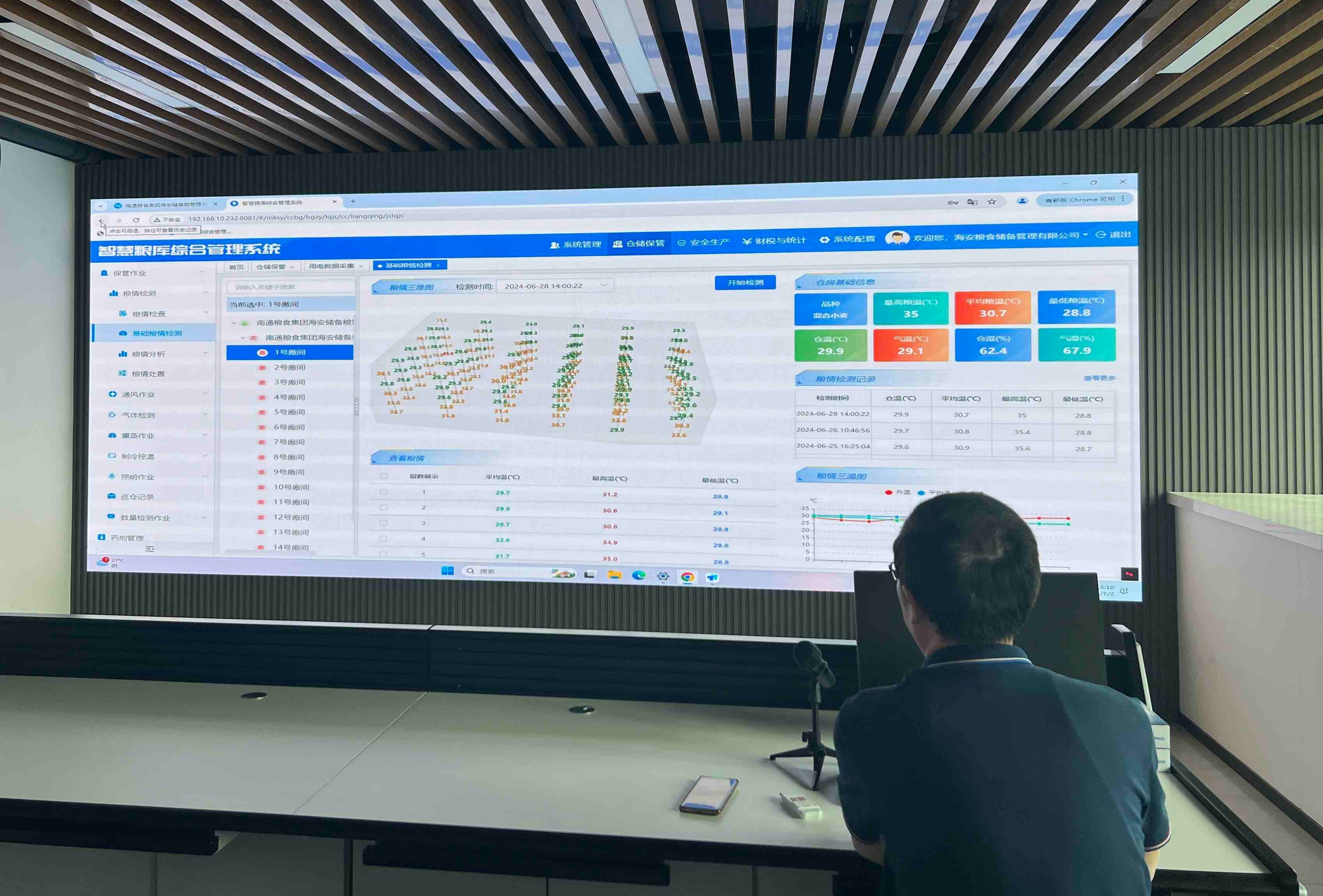 粮食仓储环境的关键在于温度和湿度的控制:温度过高会缩短粮食的存储期限,湿度过高则容易导致粮食发热、霉变甚至霉烂。海安储备粮公司运用的人工智能、物联网等技术为粮食“新鲜”进仓、安心“住房”创造了更好的条件。
